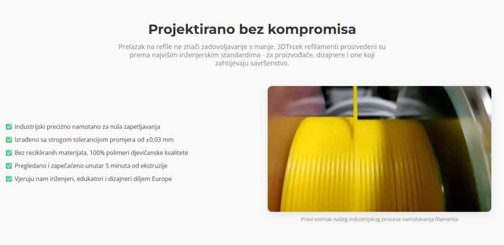 Ovaj filament proizveden je u Europskoj Uniji u skladu sa svim zakonskim regulativama s ciljem postizanja vrhunske kvalitete filamenata za 3D printere.