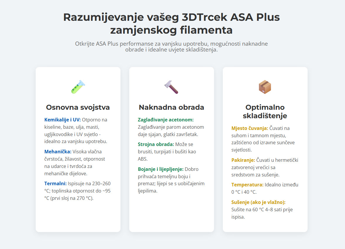 Refill ASA PLUS filamenti 3DTrček predstavljaju odličan filament za 3D printanje Vaših funkcionalnih prototipova i dijelova. Jednostavnije printanje i manje deformacija.