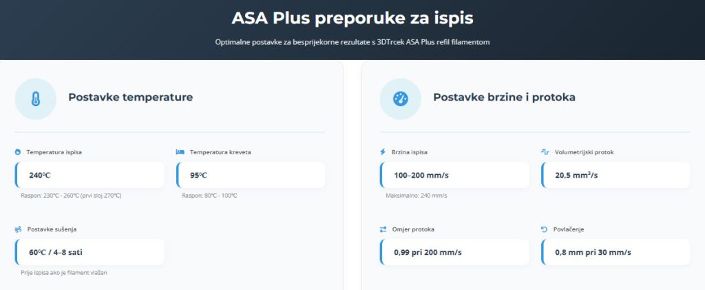 | Preporučena brzina 3D printanja: | 100 – 200 mm/s |
