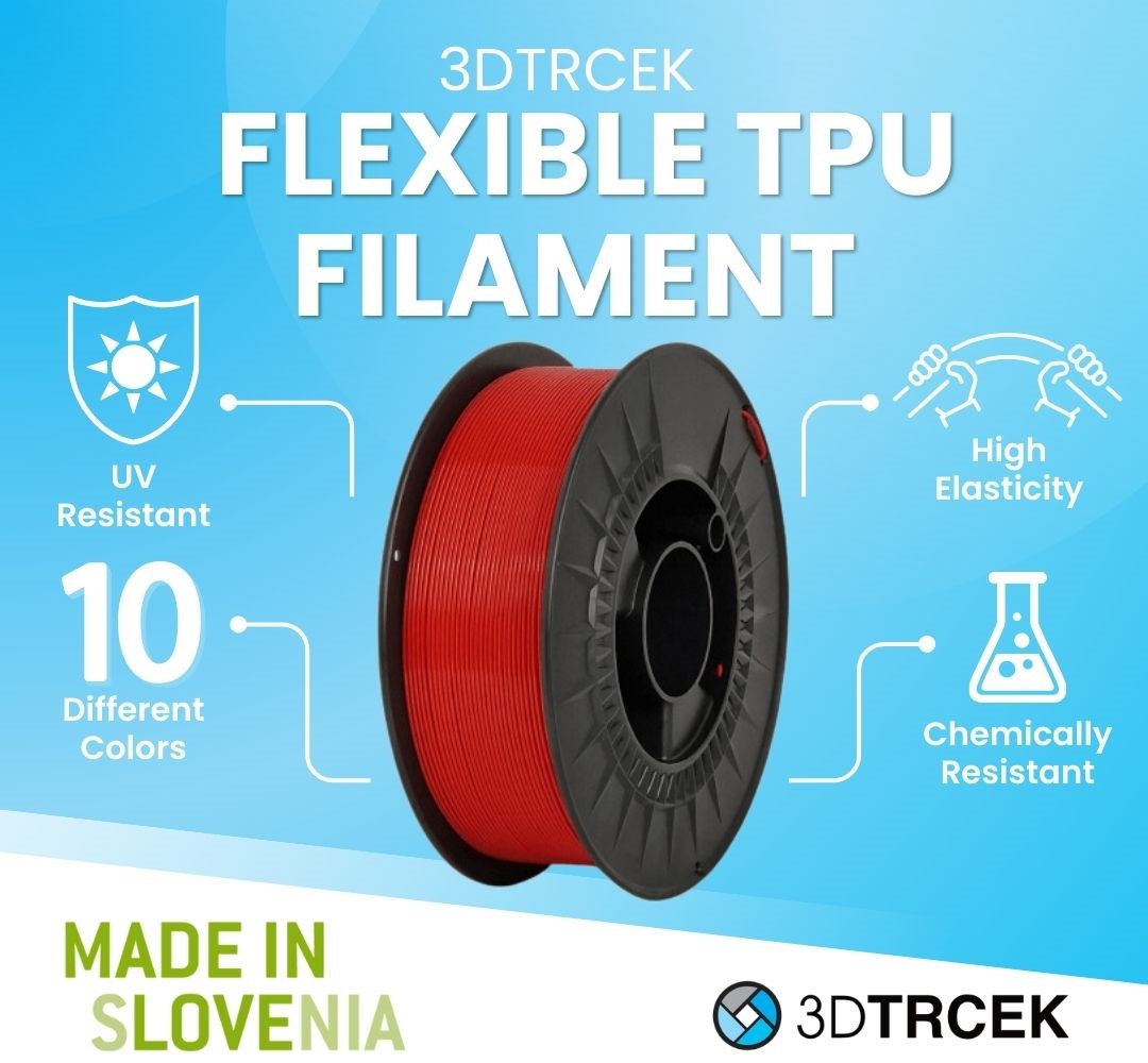 TPU filament 3DTrček predstavljaja odličan filament za 3D printanje Vaših funkcionalnih prototipova i dijelova. Zahtijeva direct drive ili barem Capricorn PTFE cjevčicu.