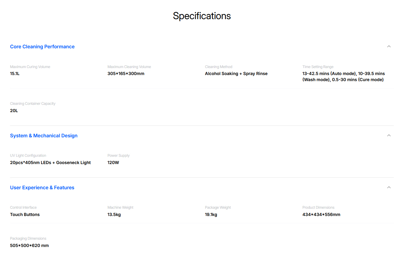 Anycubic Wash & Cure 3 Max je najveće i najintuitivnije rješenje za 3D ispise od smole. Zahvaljujući volumenu čišćenja od 305 x 165 x 300 mm, nudi 98,55% veći volumen od Wash & Cure 3 Plus te je stoga idealan za velike modele ili više ispisa istovremeno.