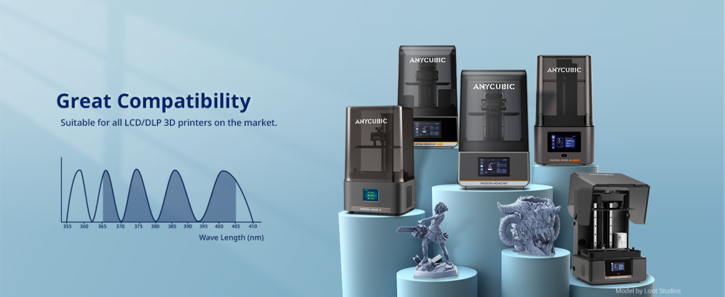 Kompatibilan sa širokim pojasom od 365-405 nm, Anycubic Water-Wash Resin 2.0 prikladan je za većinu resin 3D printera na tržištu. Možete postići bolje učinke s Anycubic LCD 3D printerima.