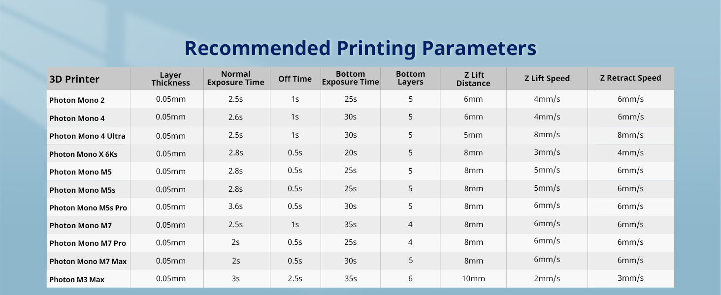 Preporučeni parametri za printanje sa Anycubic Water-Wash Resin 2.0 resinom