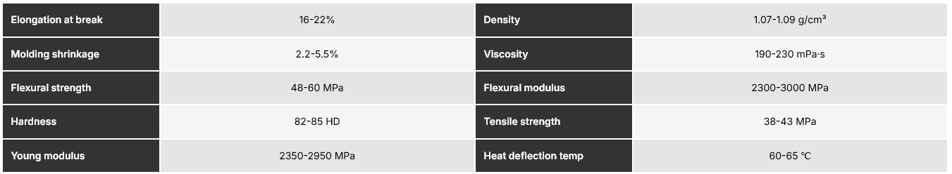 - Navedena Anycubic 3D smola omogućava produljenje od 16,62% nakon stvrdnjavanja, optimizirajući mehaničku stabilnost i otpornost na lom.