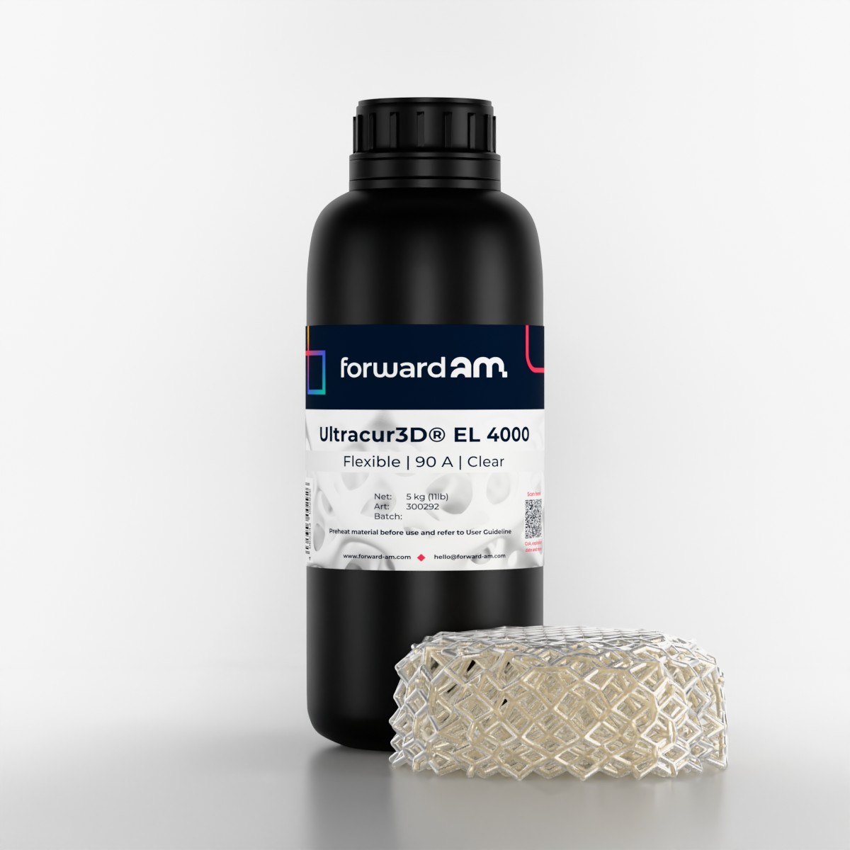 Ultracur3D® EL 4000 tvrtke Forward AM najnoviji je dodatak našim fleksibilnim i elastomernim smolama. Sa svojom visokom tvrdoćom od Shore 90 A, nalazi se na vrhu našeg portfelja, koji sada pokriva cijeli spektar od Shore 40 A do 90 A. Zbog svoje vrhunske čvrstoće, otpornosti na odbijanje i kidanje, ovaj je materijal savršeno prikladan za primjene kao što su obuća, biciklistička sjedala i jastučići za ublažavanje udaraca.