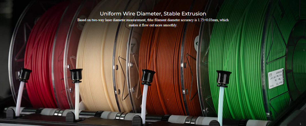 Zahvaljujući automatskom namotavanju i dvosmjernom laserskom mjerenju promjera, filament održava preciznih 1,75 mm (+0,03 mm). To osigurava glatku ekstruziju, sprječavajući začepljenja i zapetljavanja, što se prevodi u ispis bez problema.