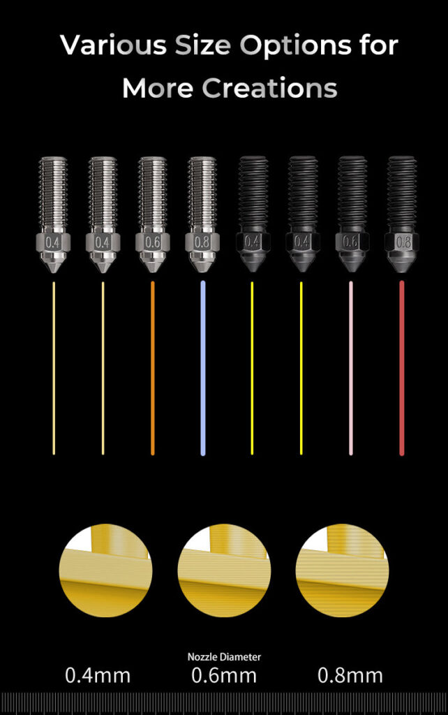 Creality Creality K1 Nozzle Kit – mlaznica za K1, K1 Max, CR-M4, Ender-3 V3 KE, Ender-3 V3, CR 10SE originalne mlaznica (sapnica, dizna, nozzle) dimenzije: 0,4, 0,6 i 0.8 mm.