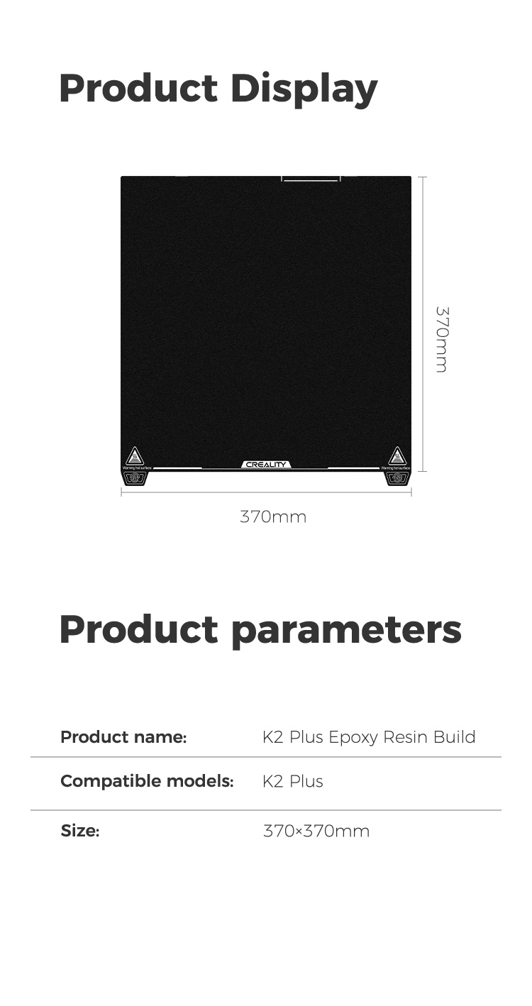 Creality K2 Plus Epoxy Resin Build Plate – podloga pruža glatku i stabilnu površinu za 3D ispis, osiguravajući snažno prianjanje i dosljednu kvalitetu ispisa. Njena izdržljiva epoksidna smolna konstrukcija povećava pouzdanost, što je čini odličnim izborom za K2 Plus 3D printer.