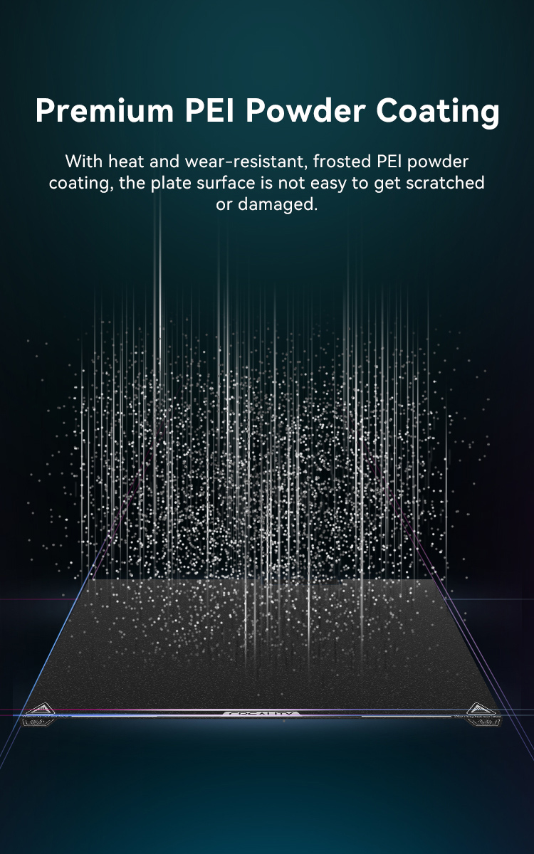 K2 Plus PEI podloga pruža izdržljivu, lako održavajuću površinu za ispis s izvrsnim prianjanjem i jednostavnim uklanjanjem print modela. Njen matirani PEI premaz poboljšava lijepljenje prvog sloja, a istovremeno omogućuje glatko uklanjanje dijelova nakon hlađenja.