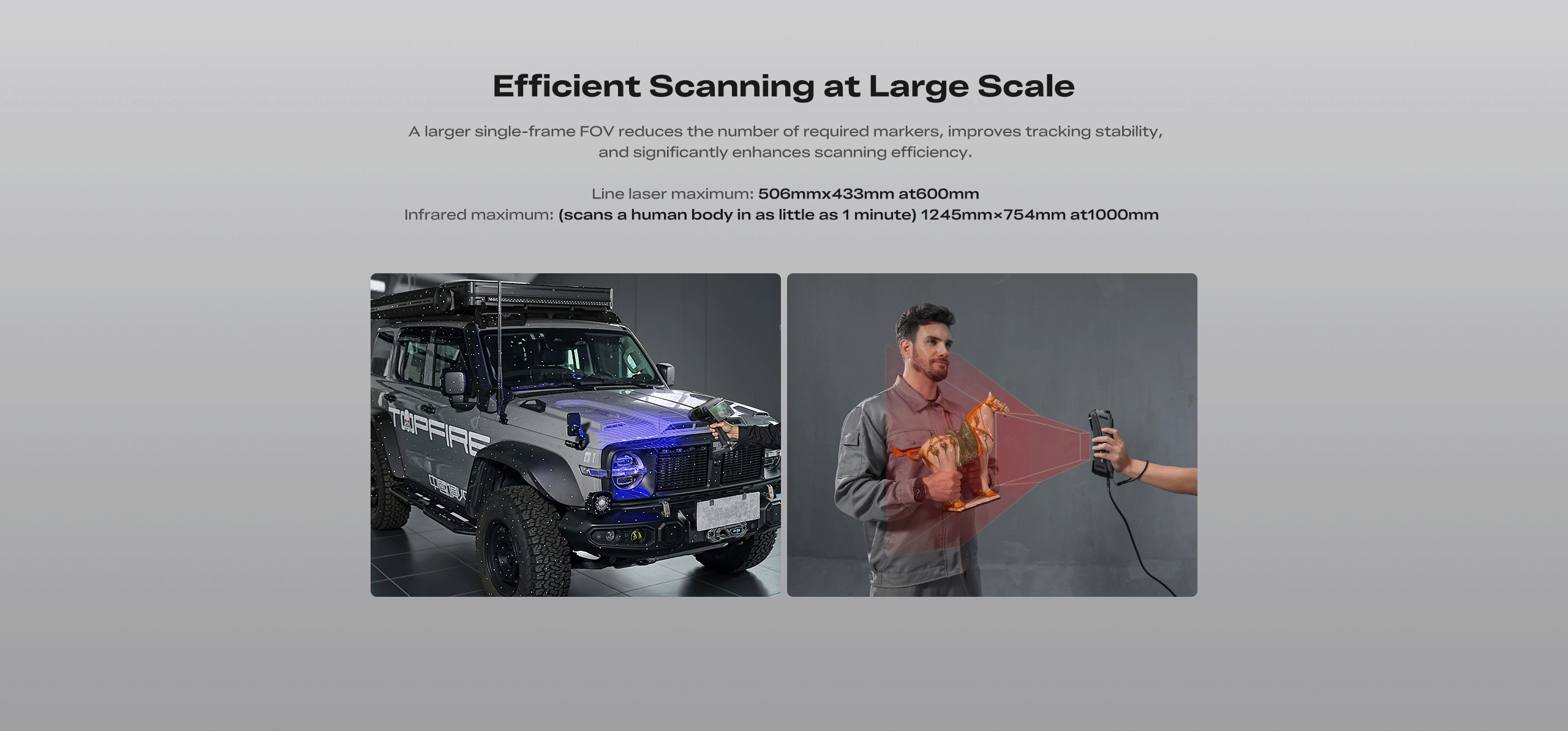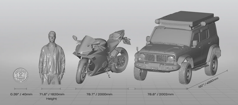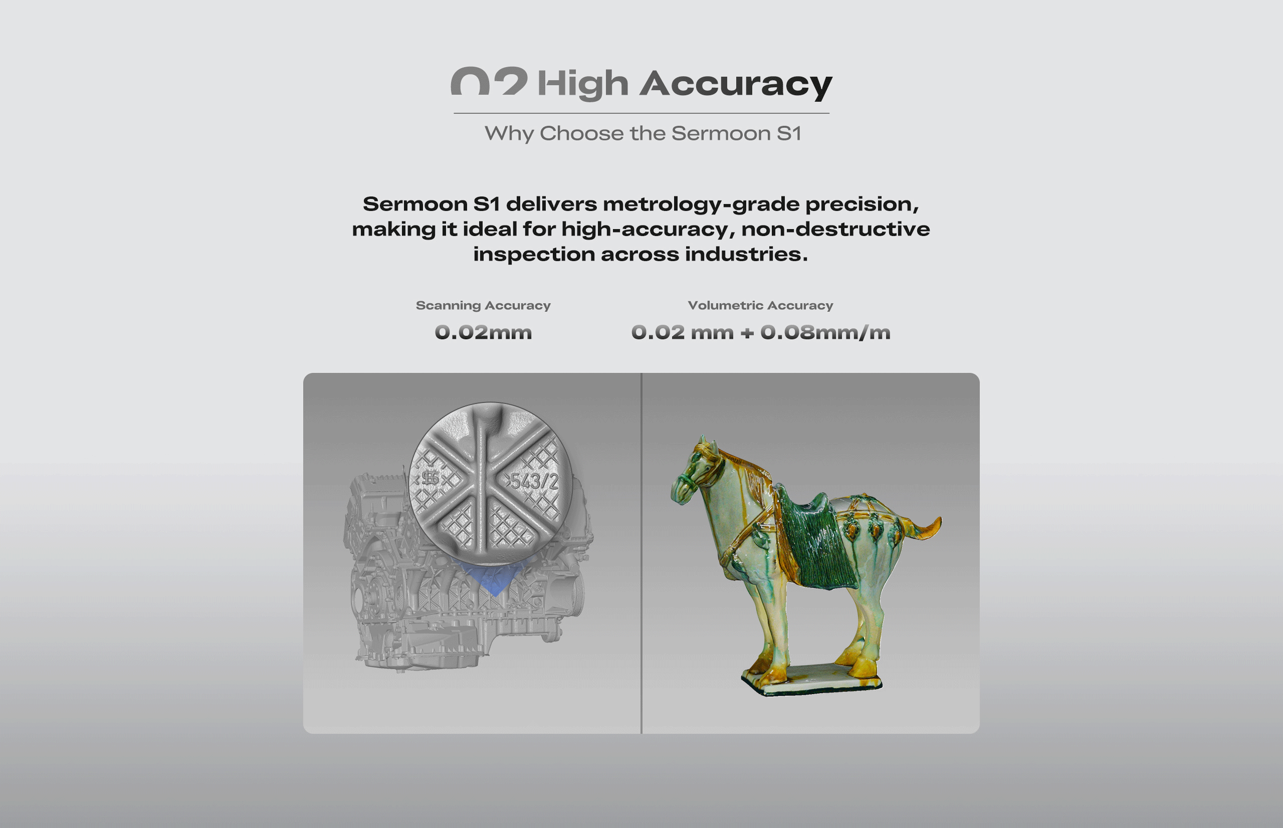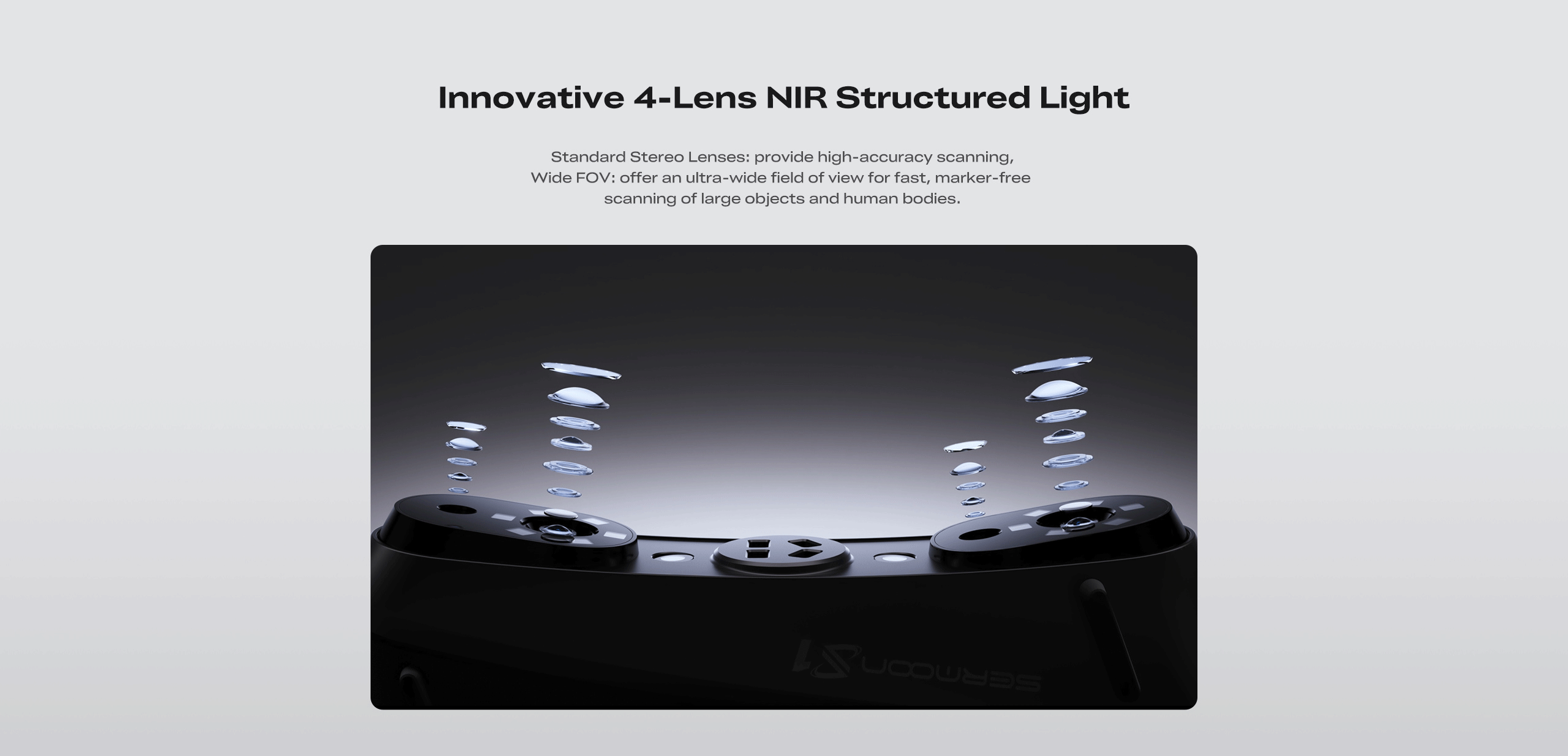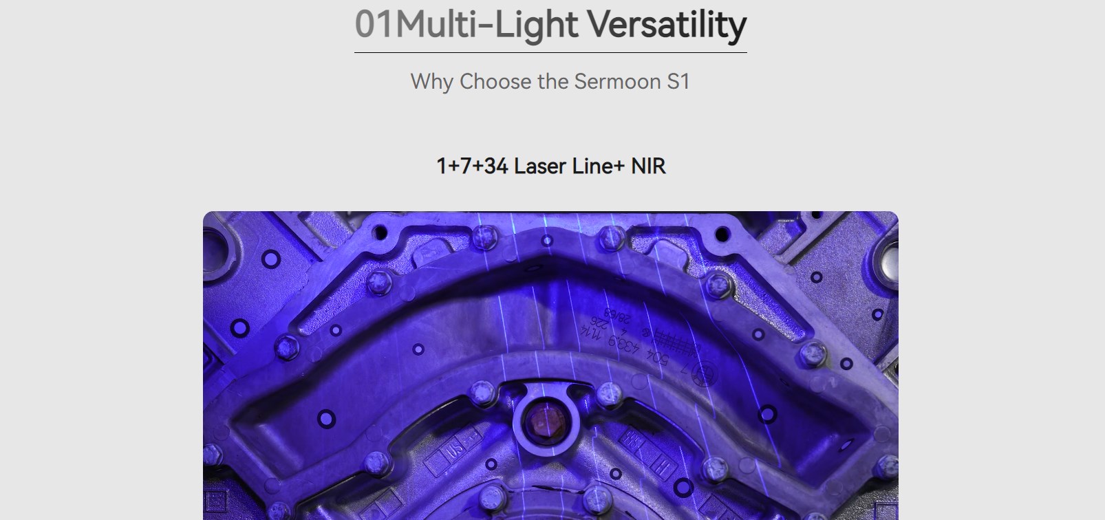 Zahvaljujući kombinaciji plavih laserskih linija i strukturiranog infracrvenog svjetla, Sermoon S1 podržava širok spektar veličina – od sićušnih predmeta poput kovanica ili vijaka do većih poput figura, automobilskih dijelova pa čak i ljudskog tijela.