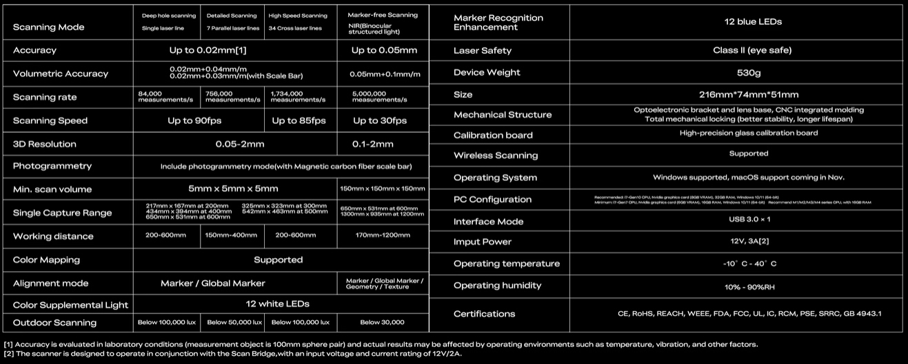 Creality Sermoon X1 integrira inovativnu kombinaciju izvora plavog lasera i infracrvenog svjetla, pokrivajući skeniranje malih, srednjih i velikih objekata. 1 + 7 + 34 plave laserske linije + NIR (infracrveno svjetlo). Omogućuje precizno skeniranje u svim uvjetima, od najmanjih do vrlo velikih objekata.