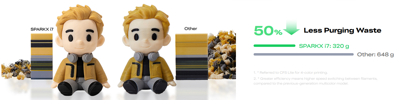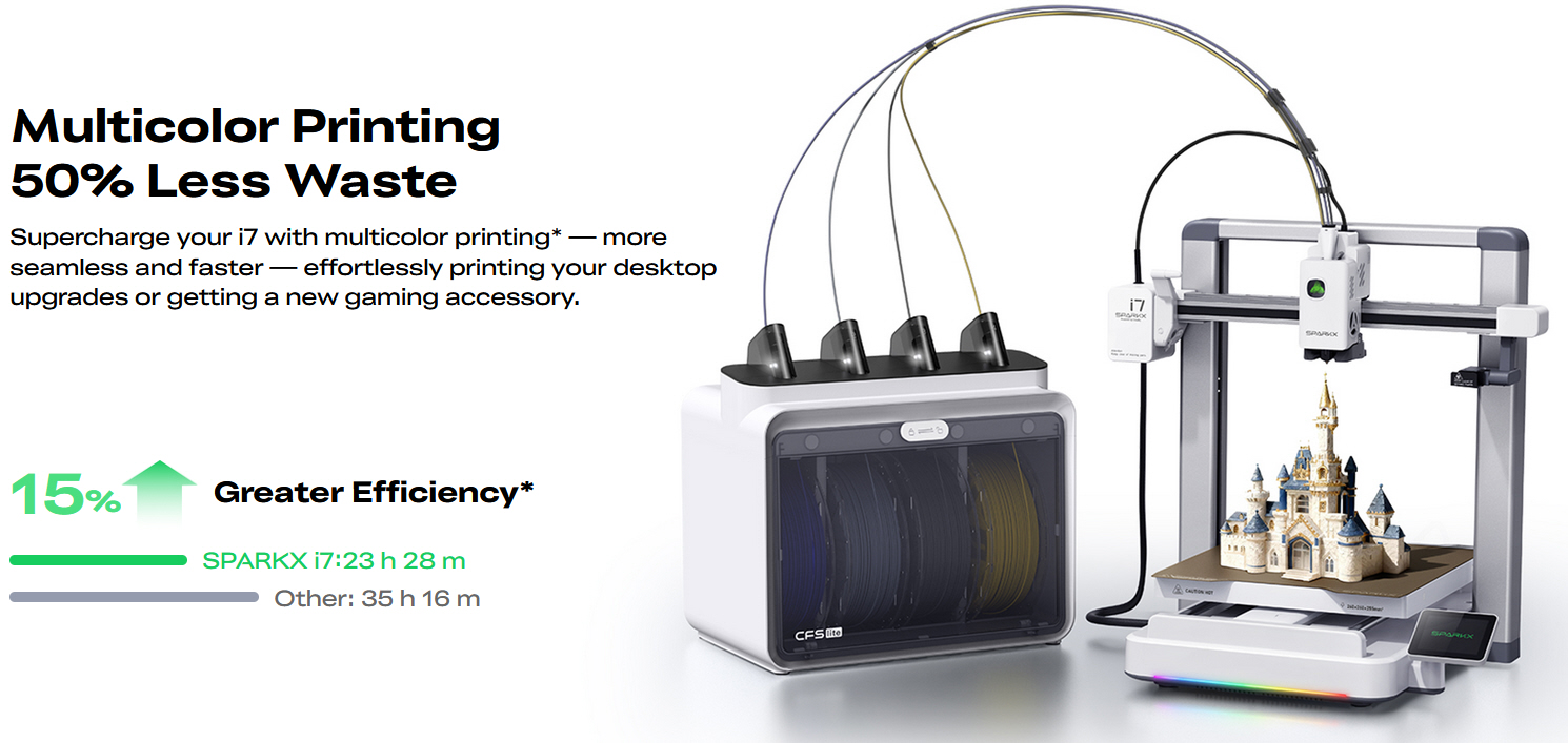 Creality SPARKX i7 Combo dizajniran je za praktičan i učinkovit višebojni ispis s do četiri boje. U kombinaciji s CFS Lite sustavom, pisač omogućuje automatsku promjenu boje, što ne samo da štedi vrijeme već i značajno smanjuje potrošnju materijala.