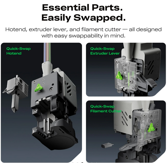 Pametne značajke kalibracije i lako zamjenjive komponente, uključujući hotend i rezač niti, doprinose pouzdanim performansama i pojednostavljenom održavanju.