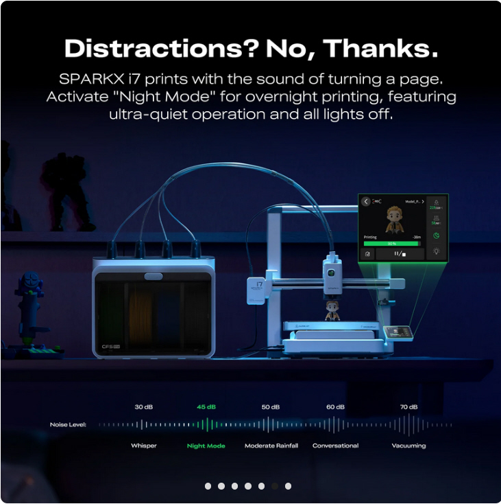 SPARKX i7 je napravljen za lakoću korištenja. Postavljanje je brzo i intuitivno, omogućujući vam prijelaz s raspakiranja na ispis u samo nekoliko minuta. Automatsko niveliranje podloge i optimizirane unaprijed postavljene postavke uklanjaju većinu ručnog rada tradicionalno povezanog s 3D ispisom, čineći pisač pristupačnim čak i za početnike. Bez sastavljanja, bez ručnog podešavanja parametara. Kalibracija, Z-pomak, “input shaping” i niveliranje podloge izvode se potpuno automatski prije svakog printanja!
