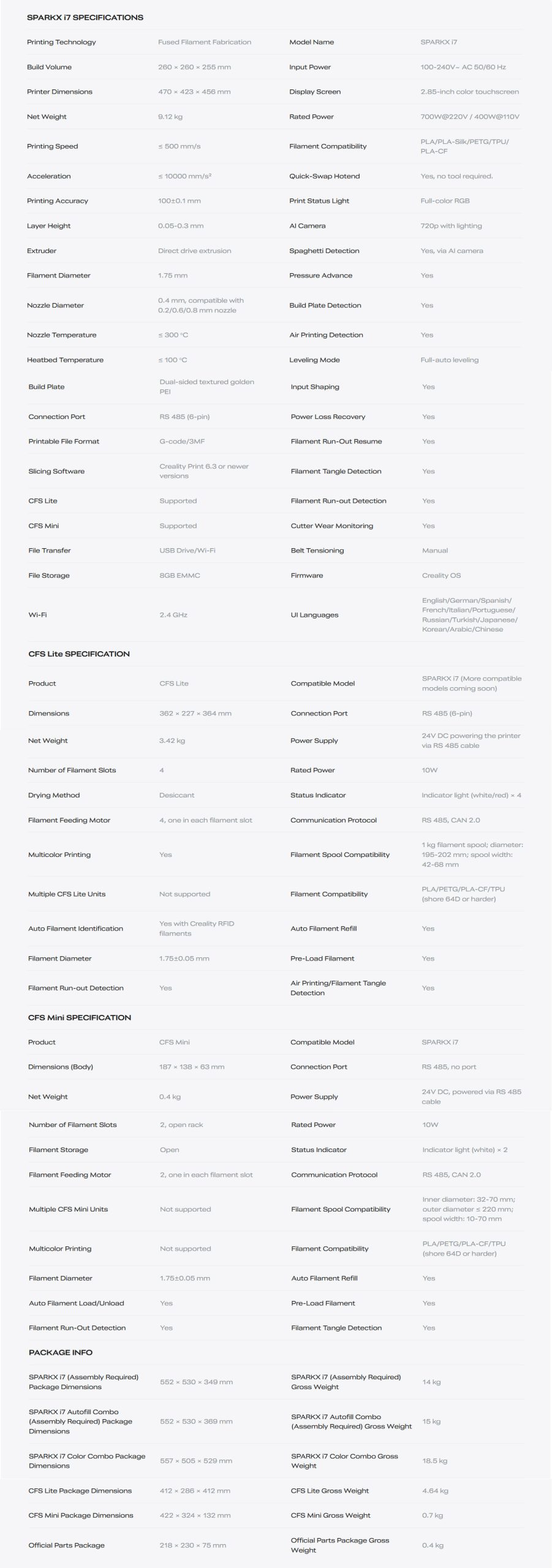 Creality SPARKX i7 Combo je novi stolni 3D printer koji kombinira modernu automatizaciju, višebojnu funkcionalnost i visoku preciznost ispisa u kompaktnom sustavu. Razvijen za praktičan ispis bez ručnog finog podešavanja, SPARKX i7 namijenjen je i ambicioznim izrađivačima i kreativnim korisnicima s visokim zahtjevima za kvalitetom.