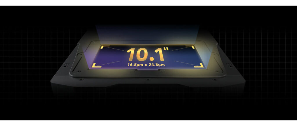 Opremljen je monokromatskim LCD zaslonom od 10,1 inch – a i osigurava ravnomjeran intenzitet svjetla i precizne detalje s XY rezolucijom od 16,8 x 24 μm.