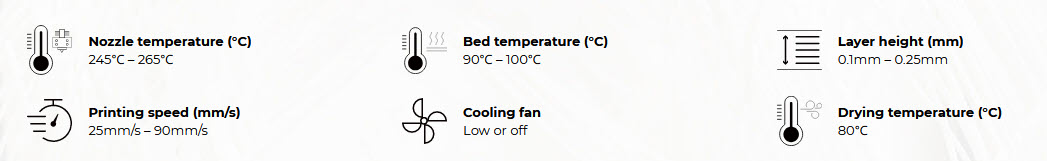 | Temperatura 3D printanja [⁰C]: | 245 – 265 |