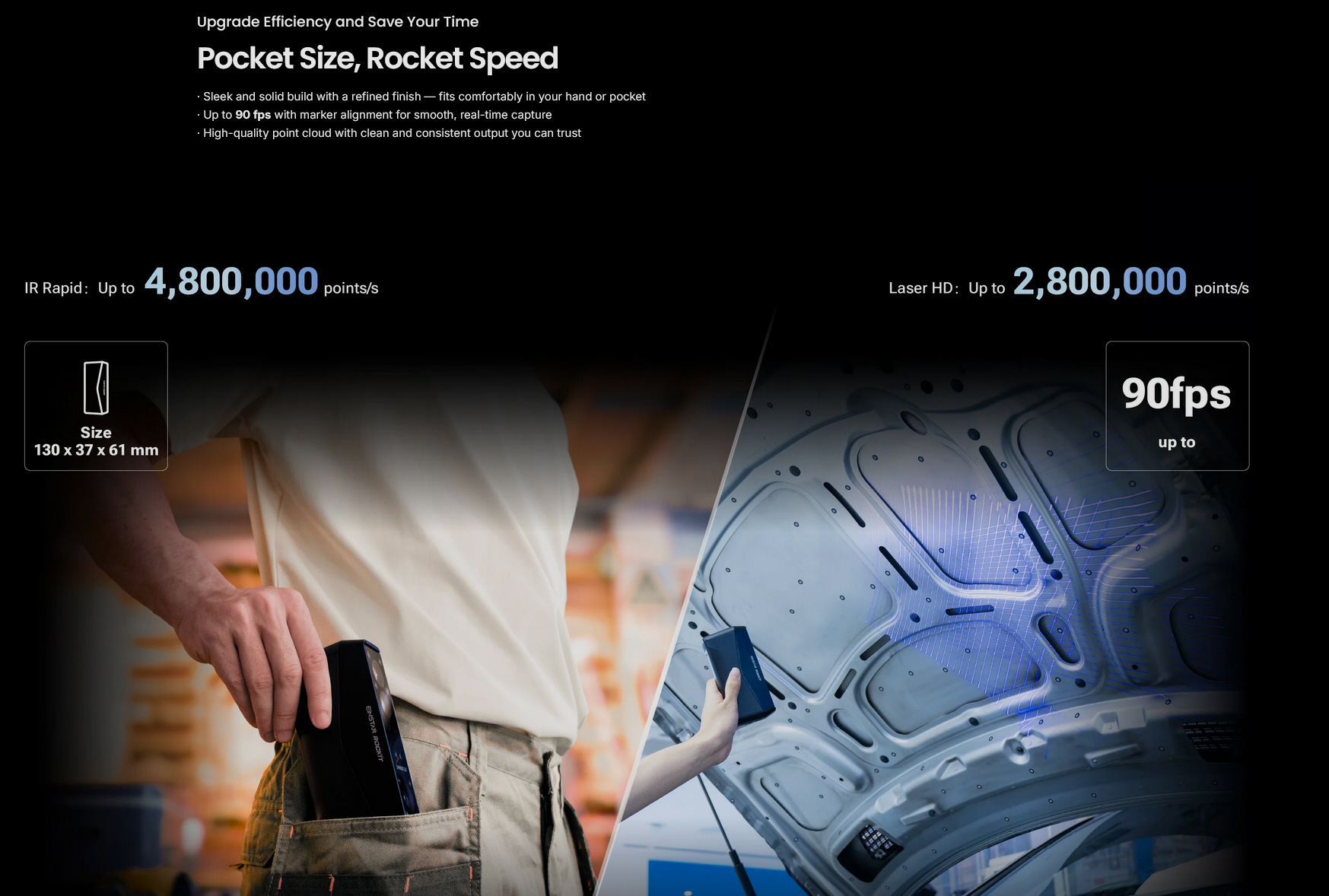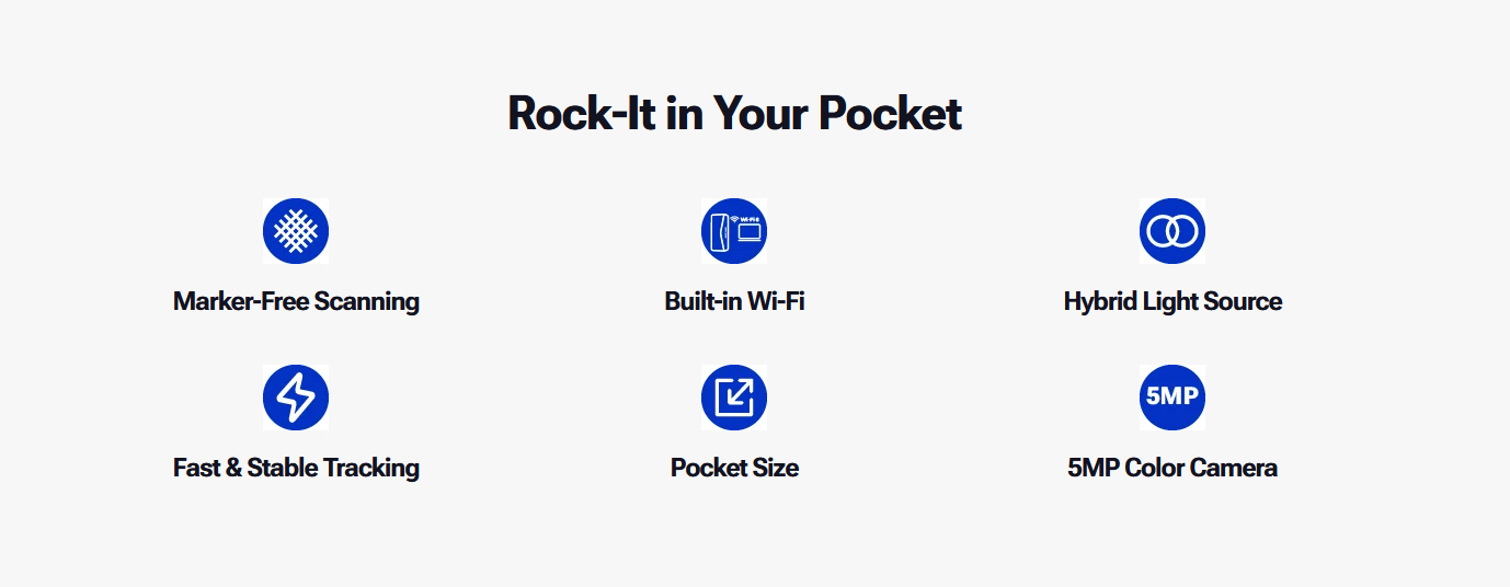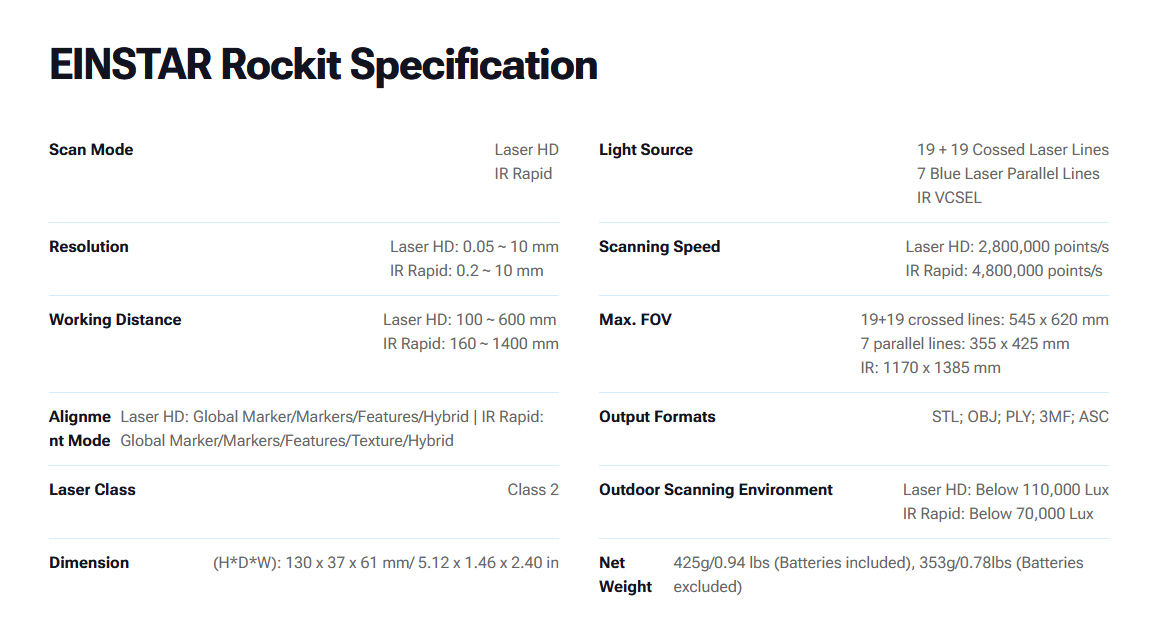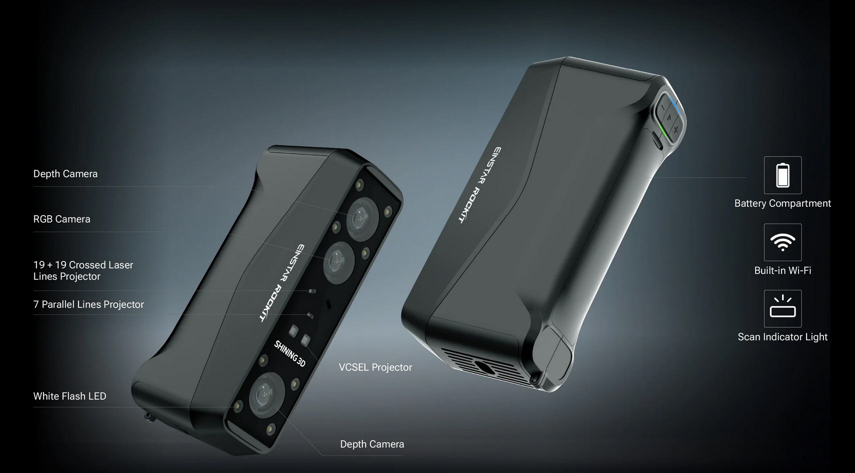 EINSTAR Rockit je kompaktan, bežični 3D skener stvoren za mobilnost i snagu. Dizajniran za kreatore, hobiiste, inženjere i edukatore, kombinira preciznu tehnologiju plavog lasera s IR VCSEL skeniranjem za snimanje objekata svih veličina i svih detalja. S dva izvora svjetlosti, integriranim WLAN-om, zamjenjivom baterijom i inteligentnom audio povratnom informacijom, Rockit objedinjuje mobilnost, preciznost i jednostavnost korištenja na novu razinu. Bez obzira radi li se o automobilskom sektoru, digitalnoj umjetnosti, AR/VR projektima ili tehničkoj izradi – ovaj bežični 3D skener pruža impresivne rezultate svugdje gdje ideje poprimaju oblik!