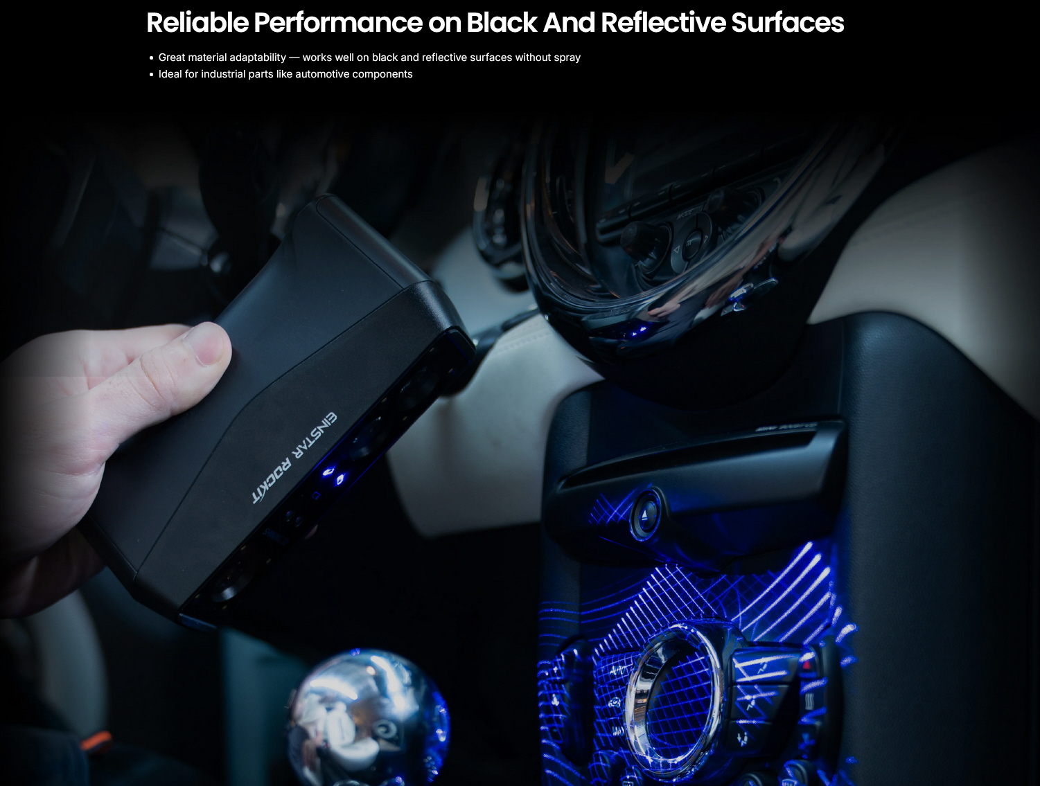 EINSTAR ROCKIT omogućuje snimanje detalja visoke rezolucije za male objekte, učinkovito skeniranje srednje veličine sa svojim nizom od 38 linija, poboljšane performanse na reflektirajućim i metalnim površinama te brzi rad do 90 fps. Namjenjen za brza skeniranja i velike površine.
