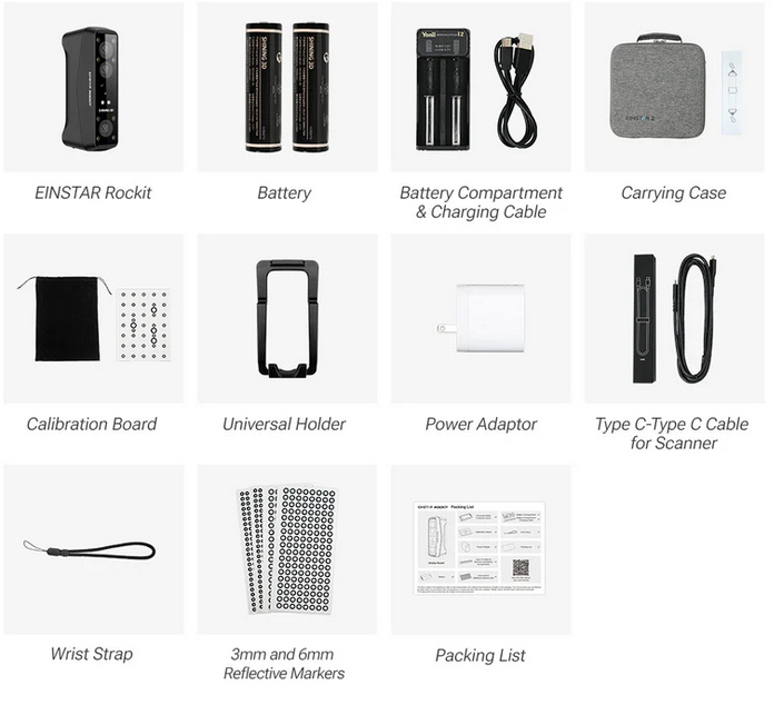 SHINING 3D EINSTAR ROCKIT: pristupačni ručni 3D skener, čini visokokvalitetne 3D podatke dostupnima svima. Mogućnost skeniranja Hibridni izvor svjetla: 38 unakrsnih laserskih linija, 7 paralelnih linija + IR VCSEL. Dobivate laganu torbu za nošenje koja uključuje niz dodataka: korisnički vodič, oznake za pozicioniranje, kalibracijsku ploču, baterije, remen za nošenje, markeri, napajanje, USB kabel….