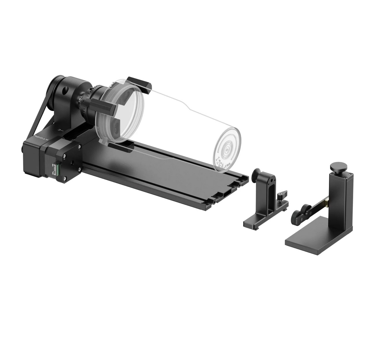 RA2 Pro Rotary Modul omogućuje graviranje cilindričnih modela. Rotacijski nastavak xTool RA2 Pro prvi je svjetski 4-u-1 rotacijski nastavak za laserske gravere. Max dimetar modela do 100 mm.